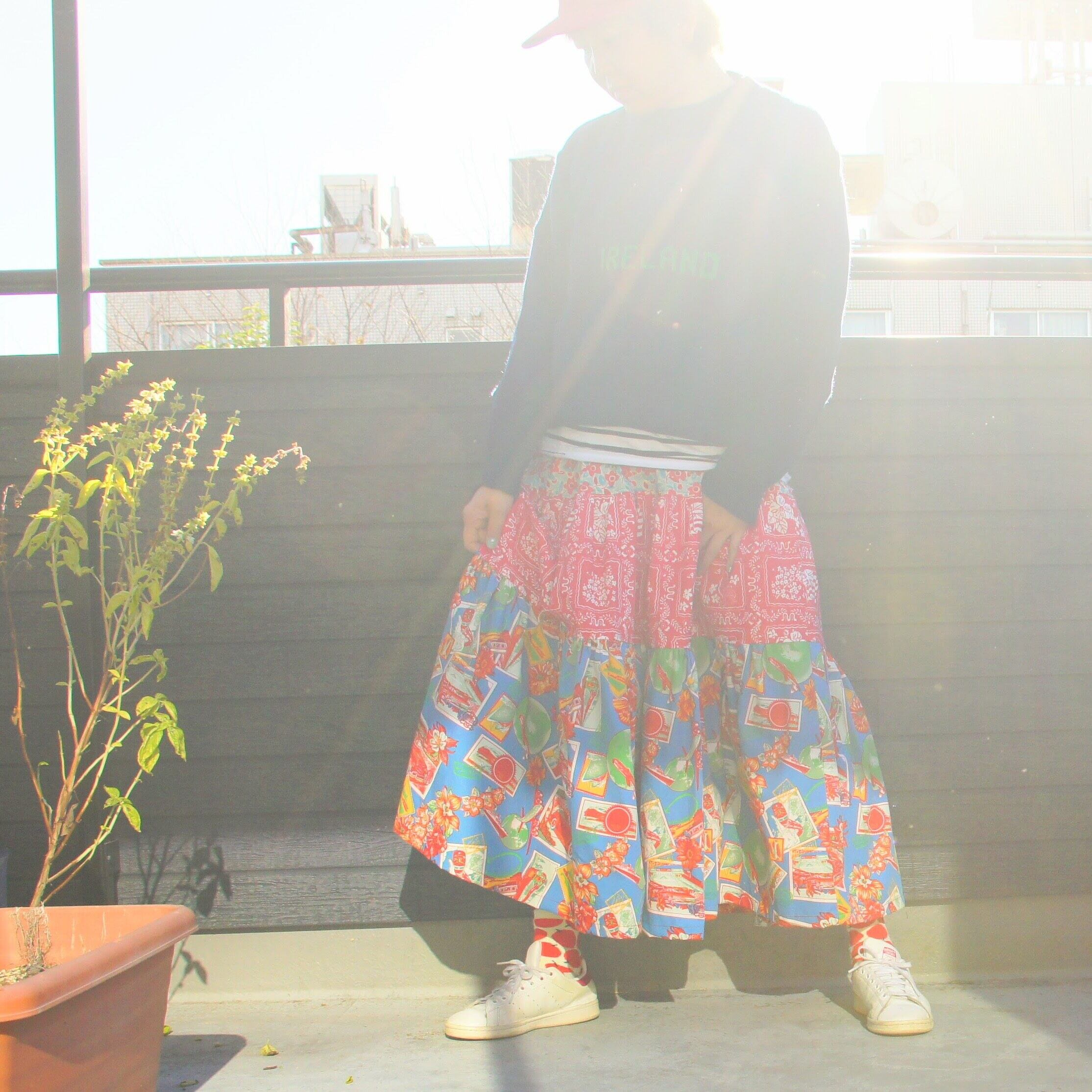 3枚の赤系の布を柄違いで組み合わせた一点モノ